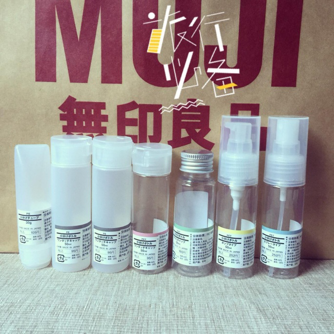 预算够的话,这里主推MUJI的分装瓶。手感好,各种型号,满足各种需求。
