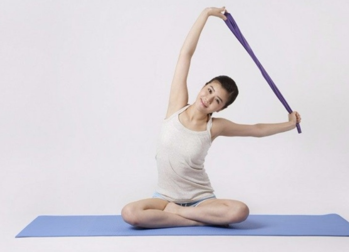 双手握住毛巾两端,做肩上提举动作,类似于举重,毛巾高举至两臂伸直,低到胸口位置即可,反复多次,可有效放松肩部、增强手臂肌肉。