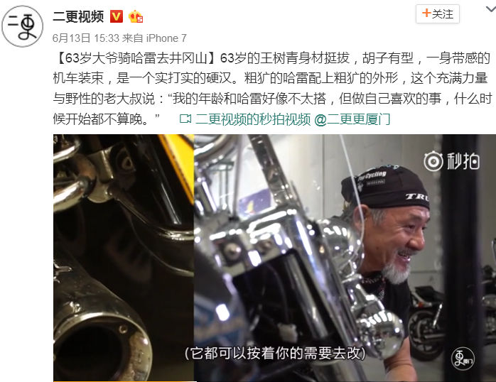 了解一下这个玩哈雷的帅气爷爷,你就会发现,年纪和激情、喜好无关,你的父亲也并没有你想的那么严肃。