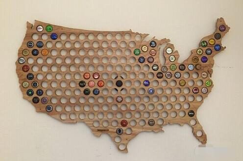 这是一个啤酒瓶盖的地图,非常适合于喜欢喝酒的老爸,如果他刚好也有收集瓶盖的嗜好,那就更配了。